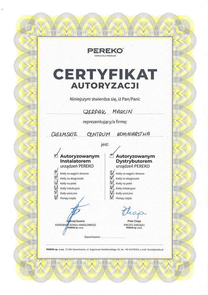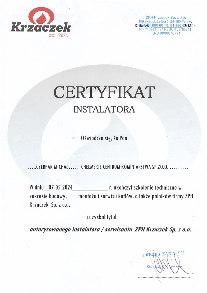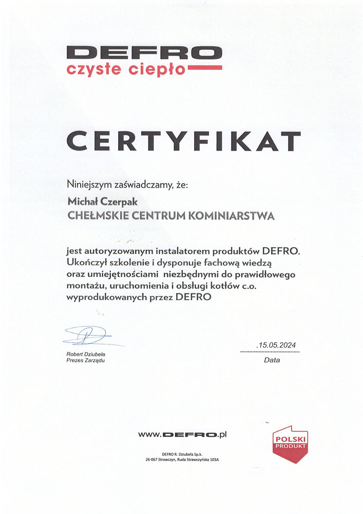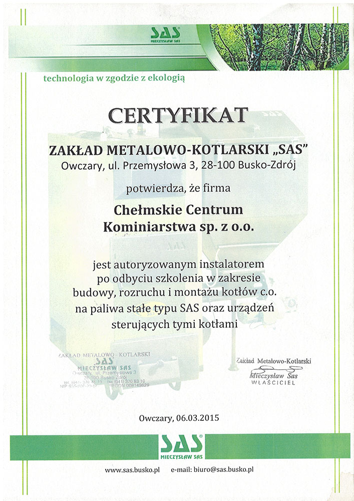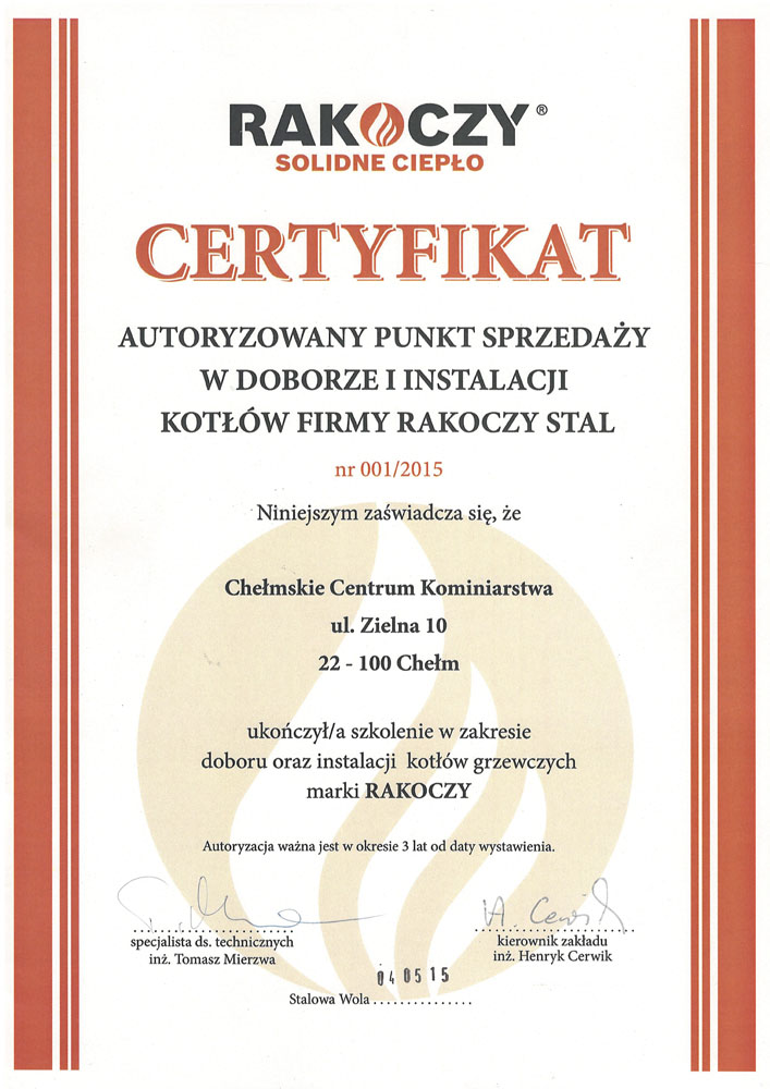 Zakład kominiarski Chełmskie centrum kominiarstwa sp. z o.o. został założony w 1992 roku w Chełmie , dołączając do Ogólnopolskiej Korporacji Kominiarzy Polskich. Oferujemy szeroki wachlarz prac począwszy od przeprowadzania kontroli przewodów kominowych i czyszczenia kominów po wydawanie specjalistycznych opinii i ekspertyz. Ponadto świadczymy także usługi pokrewne, takie jak montaż wkładów kominowych ,remonty kominów. Posiadamy tez największy wybór piecy c.o i wszystkie niezbędne elementy wyposażenia mieszkania w ogrzewanie.